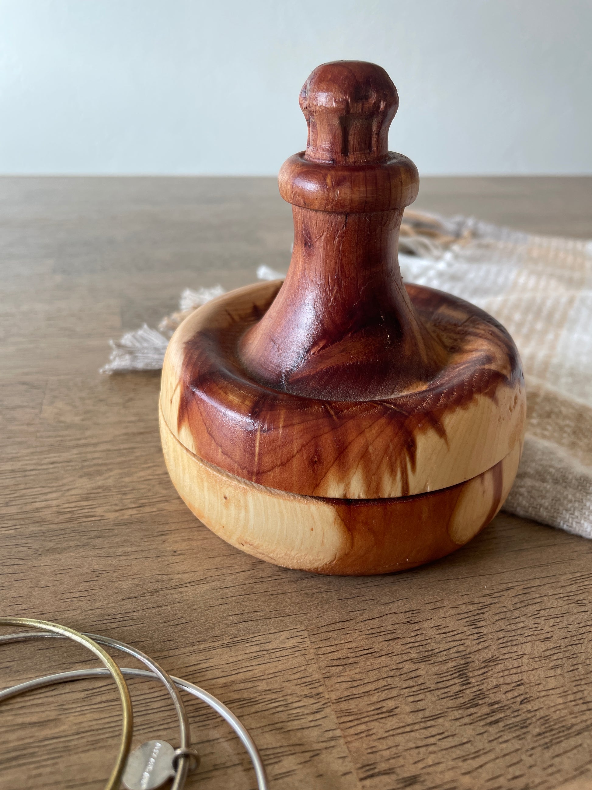 - Handcrafted wood jewelry box